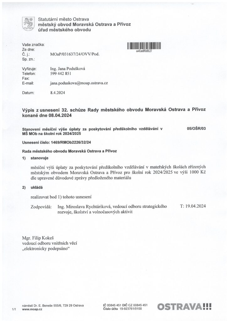 Navýšení měsíční úplaty za předškolní vzdělávání
