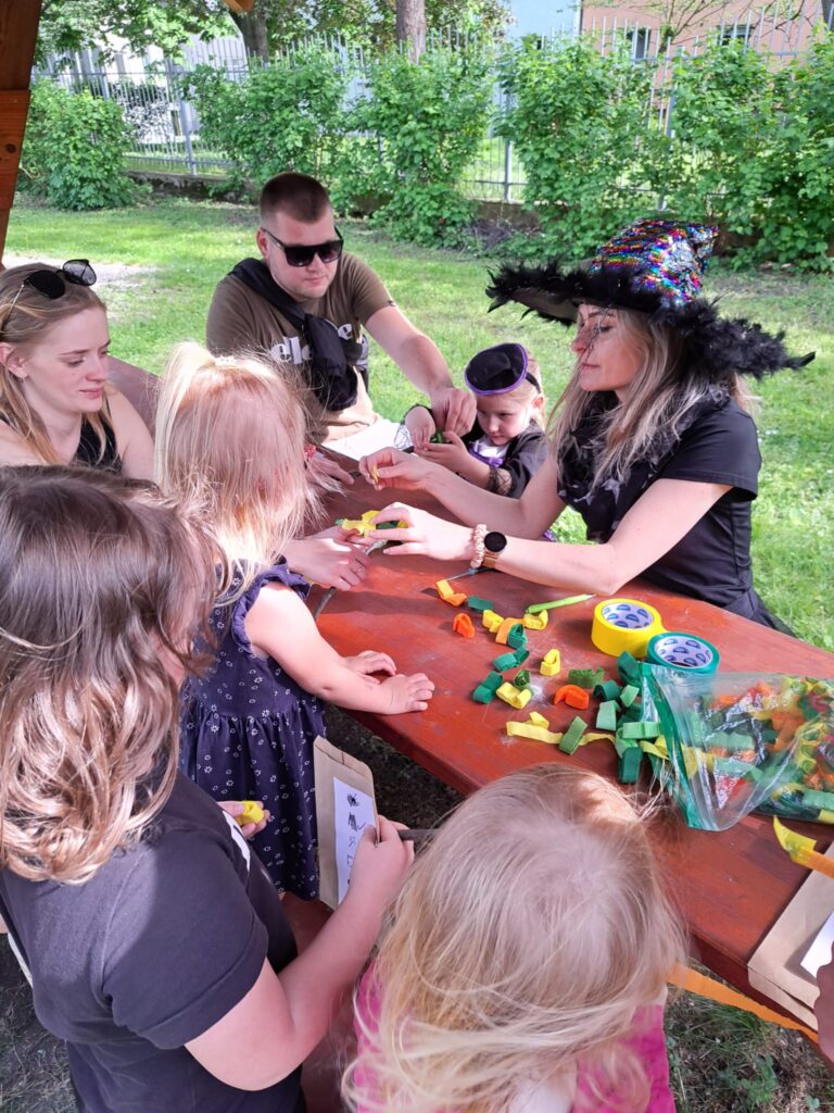 Děti z MŠ Křižíkova mají pro strach uděláno.  Nezalekly se čarodějnic ani ježibaby z perníkové chaloupky a ulouply si sladkou odměnu za zdolání náročné cesty plné nástrah, pavučin i pavouků, směle vylezly na strom pomocí žebříku a polozbořenou chaloupku ježibaby opravily nalepením získaných perníčků. Vypily lektvar ze svých ručně malovaných hrnečků a pak se už jen oslavovalo, tančilo a opékaly buřty. Pomocí vyrobené kouzelné hůlky jsme vyčarovali i slunečné počasí a užili si s rodiči krásné odpoledne na naší školní zahradě.